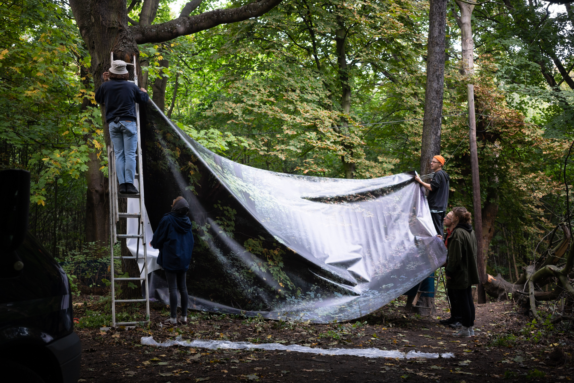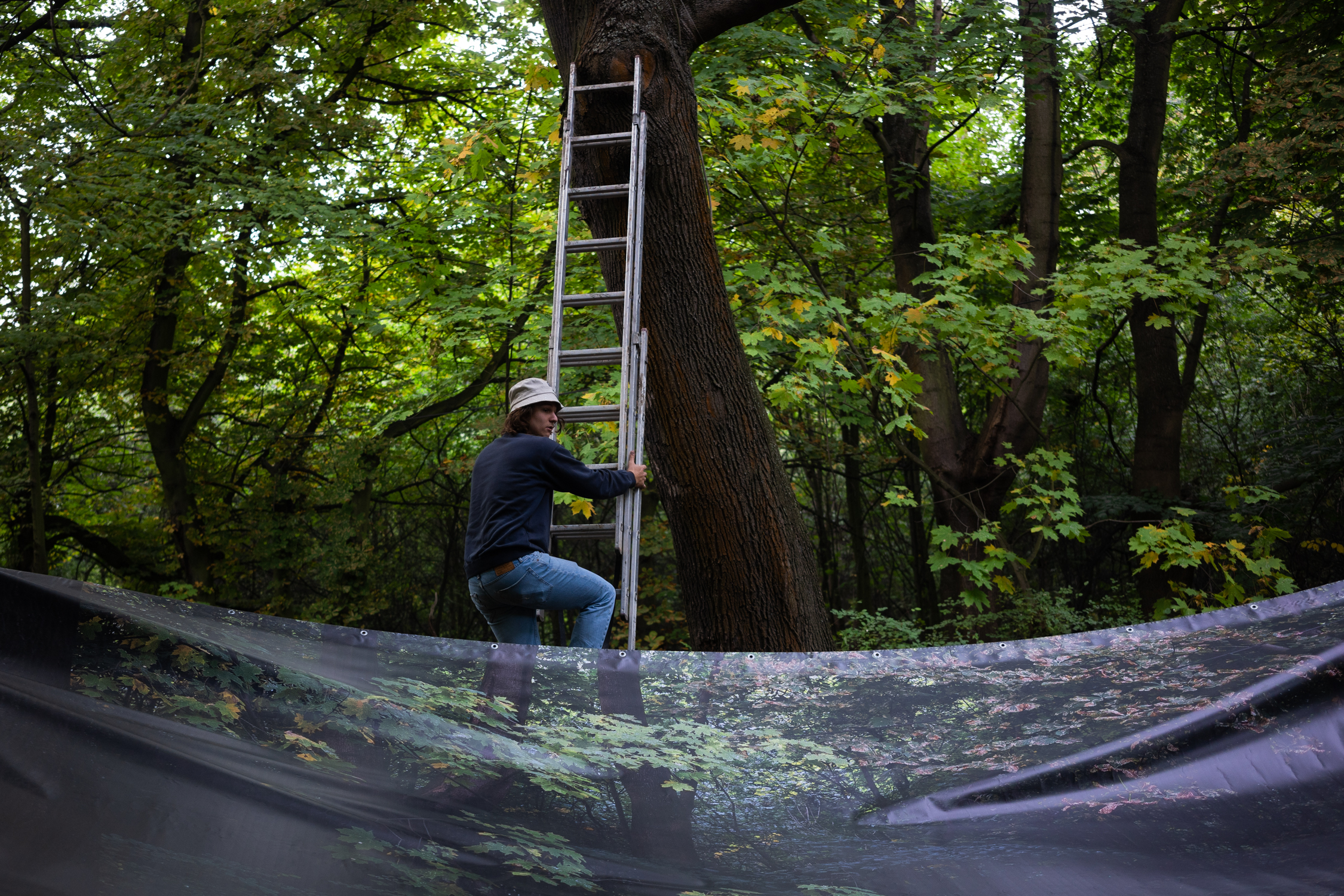 Site-specific installation as part of the group show “good morning gnojki” Highlighting the beauty of the ordinary polish surroundings. Appreciation of generic landscape, bushes.